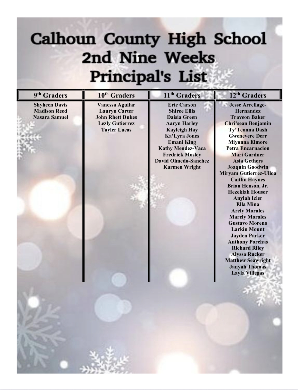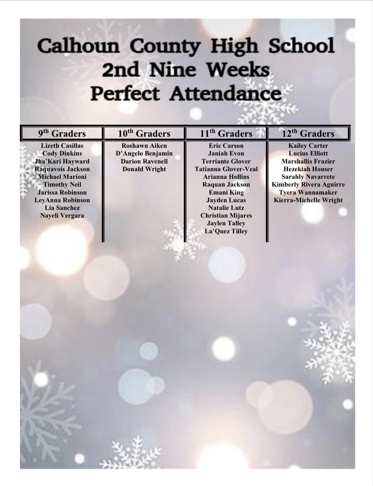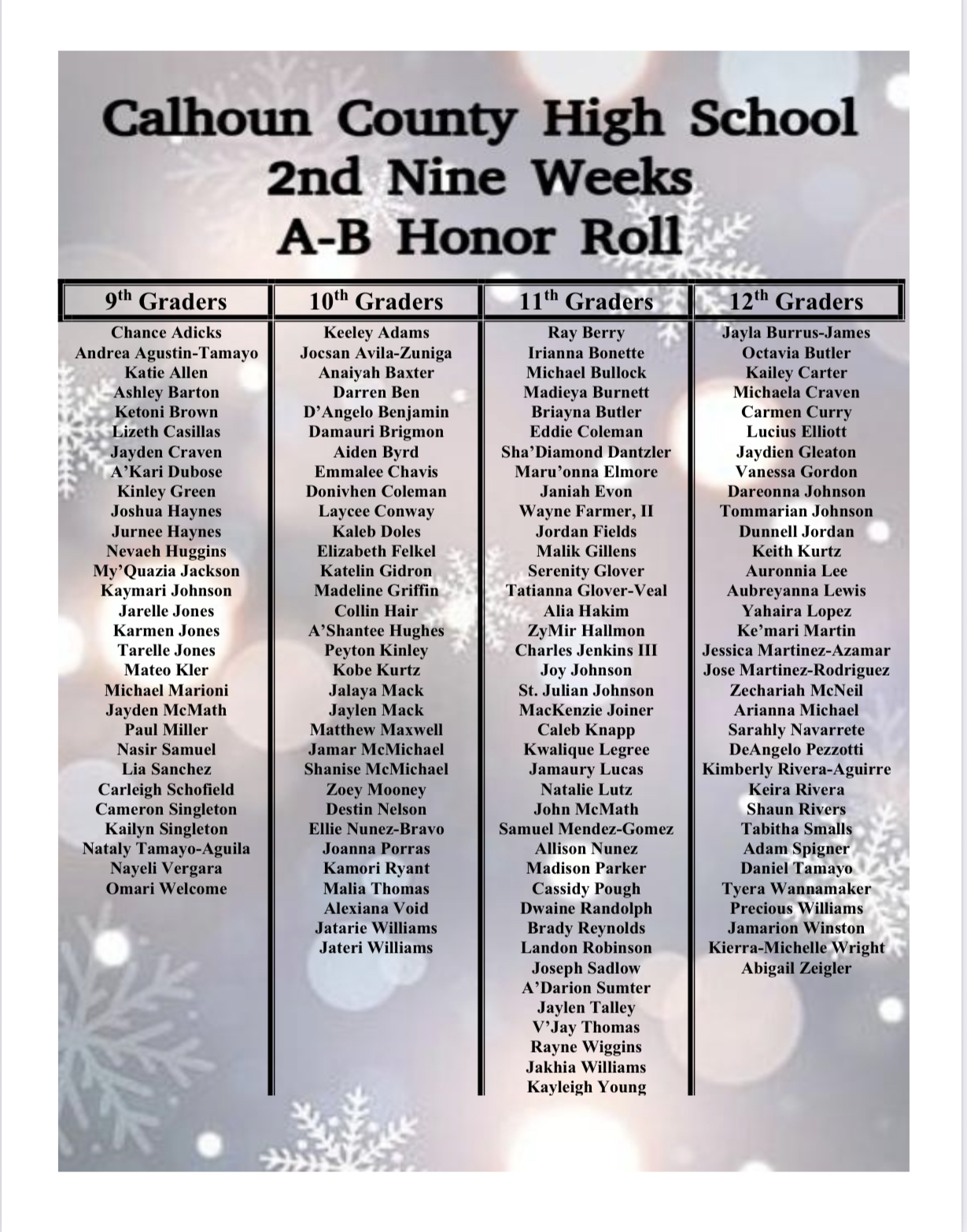 2nd Quarter 2025-2026 Student Honors